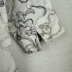 2/$30 Chicos 100% Linen Button Down Shirt Size S Floral Whimsical Oversized Boho