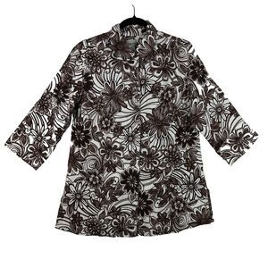 2/$30 Chicos 100% Linen Button Down Shirt Womens Size 1 M Floral Western Neutral