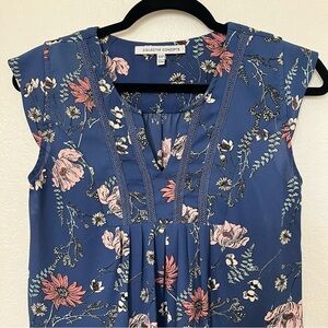 2/$30 Collective Concepts Blue and Pink Floral Sleeveless Blouse Top