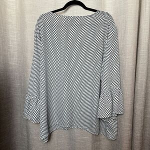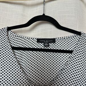 2/$30 Como Black Woman Polka Dot Blouse Size 3X Classic Office Preppy V Neck