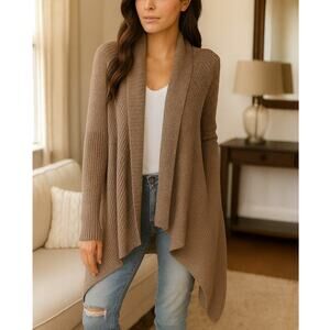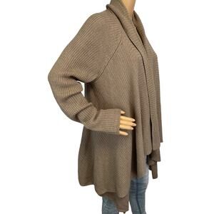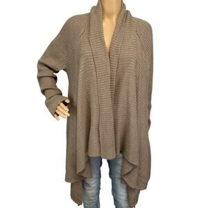 2/$30 Cynthia Rowley Merino Wool Blend Draped Long Cardigan Sweater Tan Size L