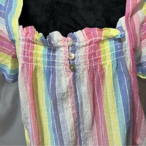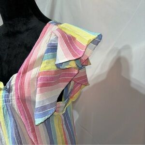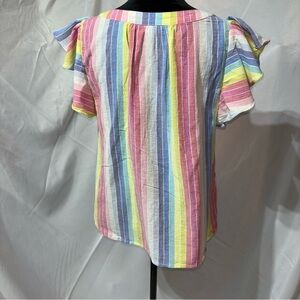 Draper James RSVP Multi Color Rainbow Stripe Flutter Sleeve Top Size XL