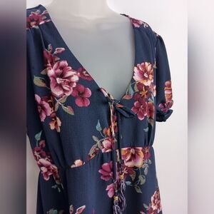 2/$30 EXHILARATION Barbiecore Fairy Grunge Floral Navy Dress Pink Flowers (#465)