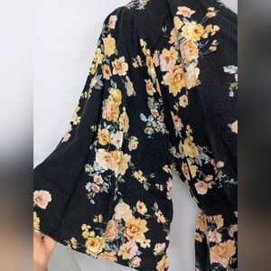 keywords:Feminine floral pattern,Modern chic style,Versatile wardrobe staple,Flared sleeve dress,Timeless wrap style,Black floral dress,A-line silhouette dress,Wrap V-neck dress,Cinched waist dress,Lightweight flowy fabric,Casual event dress,Semi-formal floral dress,Spring and summer attire,Evening outing dress,Brunch outfit,trendy,cute,seasonal,wedding,party,