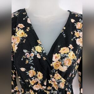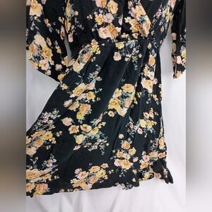 2/$30 EXHILARATION Western Yellow Black Barbiecore Y2K Floral Wrap Dress (#227)