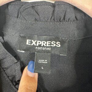 2/$30 EXPRESS Portofino Ruffle Neck Button-Down Shirt Black Large #A0501 TRB3