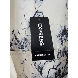 EXPRESS Top Size M NEW $64 Blouse Cream Blue Floral Collared Button Up
