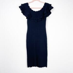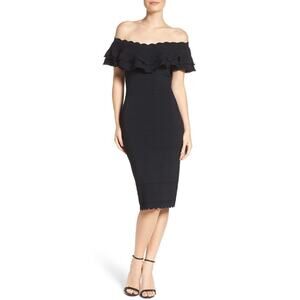 2/$30 Eliza J Off-the-Shoulder Layered Ruffle Scalloped Dress Black Sheath #6676