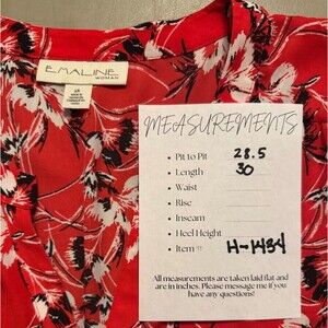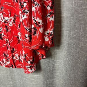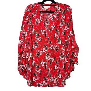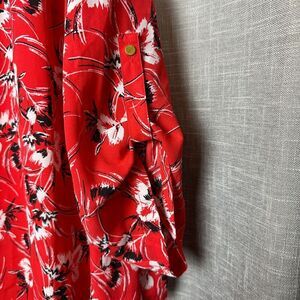 2/$30 Emaline Button Down Shirt Tunic Top Size 2X Red Floral Flowy Roll Tab Boho