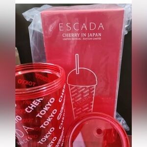 2/$30 Escada Cherry In Japan Red Tumbler with straw 14 oz