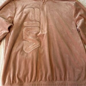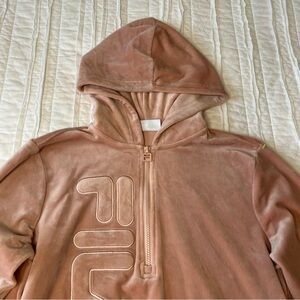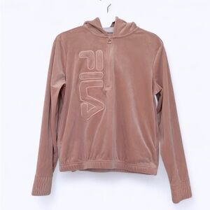 2/$30 FILA Velour Soft Pink Logo Long Sleeve Hoodie SZ S