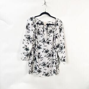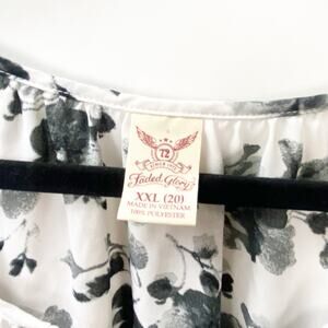 2/$30 Faded Glory XXL Womens White/Black Floral Puff Sleeve Scoop Neck Blouse