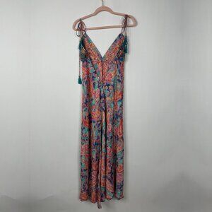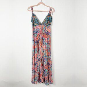2/$30 Floral Paisley Boho Maxi Beach Dress Tie Shoulders Pink Blue #A0453 TRB3