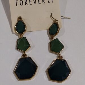 Elegant and stylish, these Forever 21 green geometric drop earrings are perfect for any occasion. Add a touch of sophistication to your outfit with these stunning earrings.