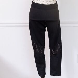 Women's black mesh panels running workout gym athleisure casual leggings by Forever 21, size M, in excellent pre-owned condition