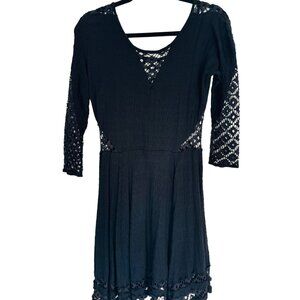 2/$30 Free People Medium Black Lace Knit Dress 3/4 Sleeve Attractive Details