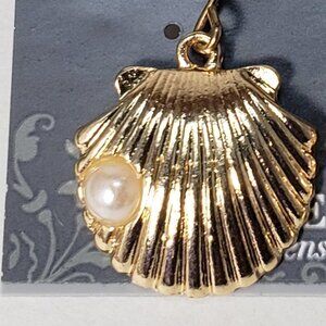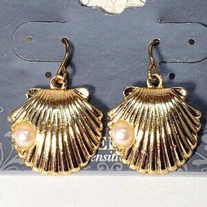 2/$30 Gold Shell Drop Earrings with Pearl Accent – 1" Women's Statement Jewelry