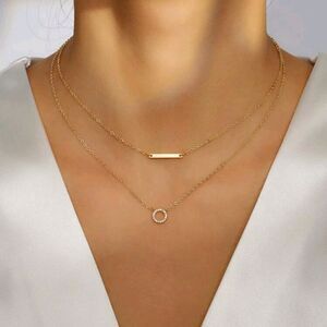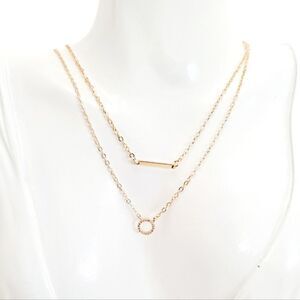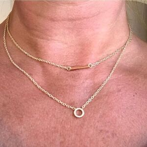 💖 2/$30 Gold Statement Layered dainty bar & rhinestone ring pendants Necklace