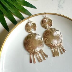 2/$30🌵 Gold Sunburst Earrings Circle Sun Tassels Fringe Boho Jewelry Gift NEW