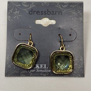 2/$30 Gold tone & Light Green Stone Square Drop 1-inch Earrings, Women Jewelry