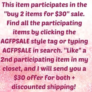 💖 To find all items participating in the 2/$30 sale, type AGFPSALE in the search bar on Poshmark or click the AGFPSALE style tag on this listing