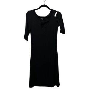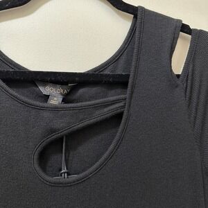 2/$30 Goldray Jersey Knit Ribbed Midi Dress Size M Black Cut Out Stretch NWT