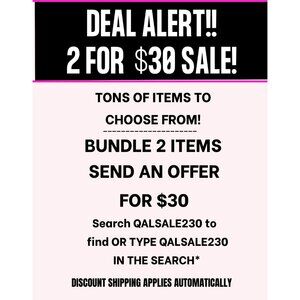DEAL ALERT! Check out this awesome SALE! BUNDLE THIS ITEM WITH ANOTHER 2/$30 ITEM IN MY CLOSET, COMMENT "READY" AND I'LL SEND $30 OFFER WITH DISCOUNTED SHIPPING! There are MULTIPLE participating items to choose from. To find these items, type QALSALE230 in the search bar on Poshmark or click the QALSALE230 style tag on this listing!
