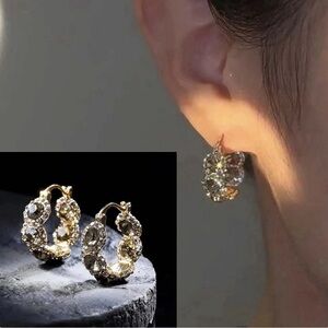2/$30🌵 Gray Smoke Crystal Rhinestone Hoop Earrings Huggies Sparkle Jewelry NEW