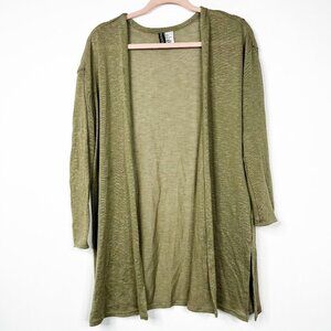 2/$30 H&M Divided Long Cardigan Duster Side Vented Olive Small #8980