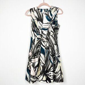 2/$30 H&M Hawaiian Tropical Print Pleated Sheath Dress Cream Black 4 #8797