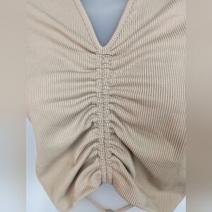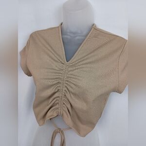 2/$30 H&M Tan Ruched V-Neck Summer Feminine Crop Top (#1,364)