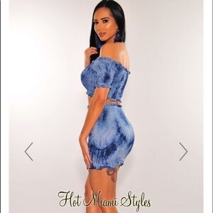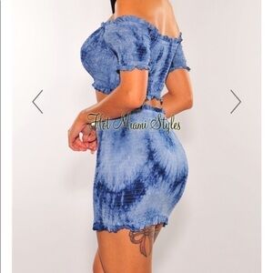 2/$30 Hot Miami Styles Blue Smocked Crop Top Skirt Tie Dye Two Piece Set Large