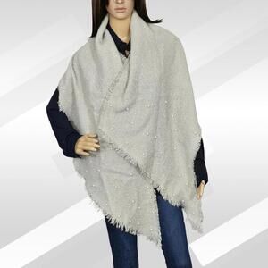 INC pearl wrap, gray embellished scarf, faux pearl shawl, NWT INC wrap, elegant gray wrap, pearl trim shawl, dressy scarf for women, special occasion wrap, oversized pearl embellished wrap