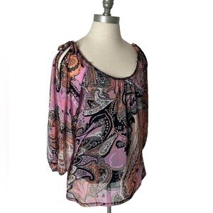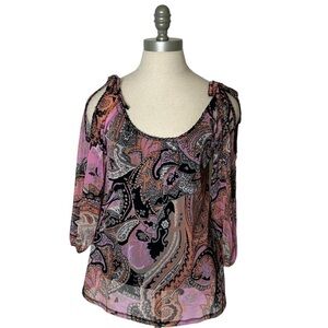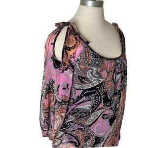 2/$30 INC Macy’s Pink Paisley Embellished Cold Shoulder 3/4 Sleeve Blouse Medium