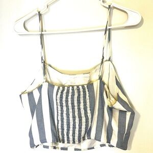 2/$30 - If By Sea - Blue & Cream Striped Crop Top Spaghetti Strap Top Size L