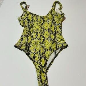 Iris Basics Lime Green & Black Thong Bodysuit Size M