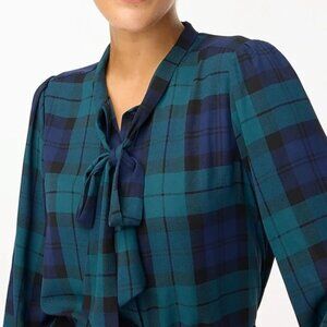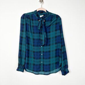 2/$30 J. Crew Black Watch Long-Sleeve bow Top Button-Down Blue Green #A0429 TRB3