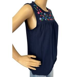 2/$30 J. Crew Embroidered Yoke Cotton Tank Top Navy Blue Floral Size S