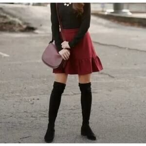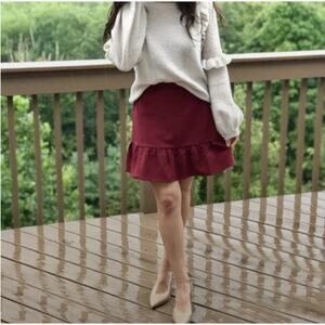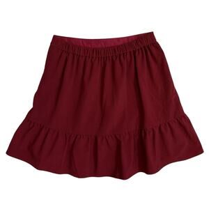 2/$30 J. Crew Mercantile Ruffle Mini Skirt Wine Red Pull On Elastic Waist Size 4