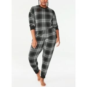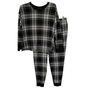 2/$30 Joyspun 2-Piece Jogger Pajama Set Black Plaid Holiday Size XL