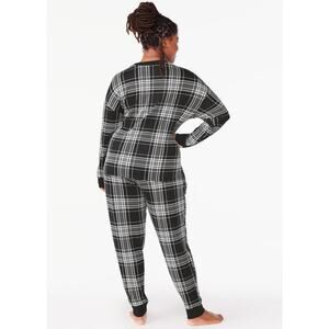 Joyspun 2-Piece Jogger Pajama Set, Black Plaid, Size XL.