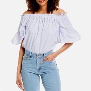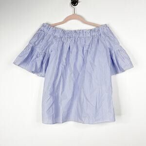 2/$30 Kate Spade Broome Street Stripe Off-the-Shoulder Blouse Small Blue #7001