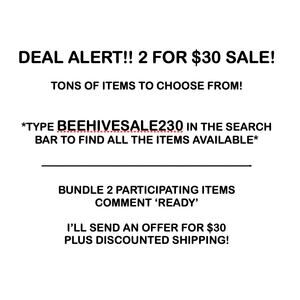 Deal Alert! Check out this awesome SALE! BUNDLE THIS ITEM WITH ANOTHER 2/$30 ITEM IN MY CLOSET, COMMENT “READY” AND I’LL SEND A $30 OFFER WITH DISCOUNTED SHIPPING! There are LOTS of participating items to choose from. To find these items type BEEHIVESALE230 In the search bar in my closet.