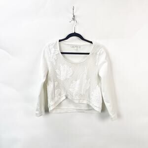 2/$30 LC Lauren Conrad Large Womens White Open Knit Pullover Crop Sweater