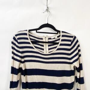 2/$30 LOFT Ann Taylor Small Womens Cream/Blue Striped Pullover Knit Sweater