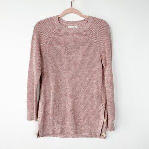 2/$30 LOFT Ribbed Tunic Sweater Adjustable Slit Pink Medium #A0626 TRB3