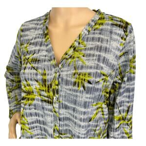 2/$30 LOGO Lori Goldstein Floral Sweater Gray Button Front V-Neck Pockets Size M