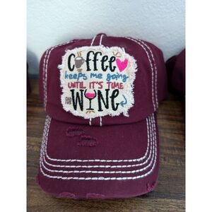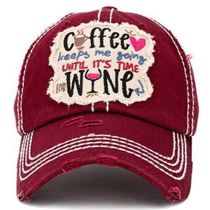 2/$30 Ladies Burgundy Coffee Until Wine Ball Cap