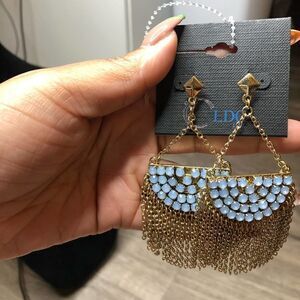 2/$30 Light Blue n Gold Chandelier Dangle drop Earrings