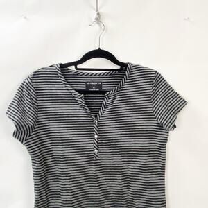 2/$30 Liz Claiborne Sport Gray Black Striped Tee Shirt Medium Women’s Casual